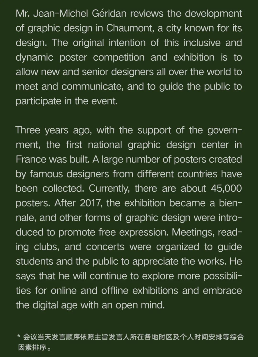 CHAIRMAN'S FORUM OF INTERNATIONAL DESIGN BIENNALE